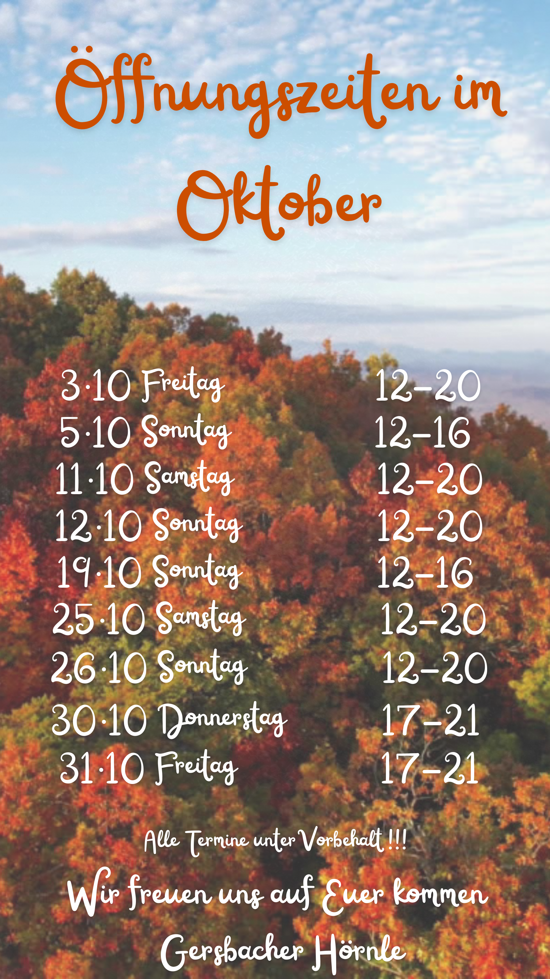 Reservierungen jederzeit möglich auch außerhalb der Öffnungszeiten